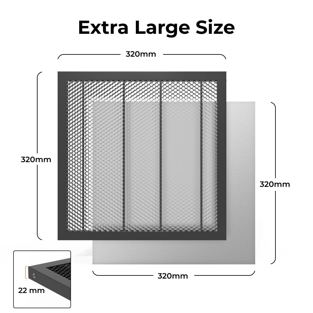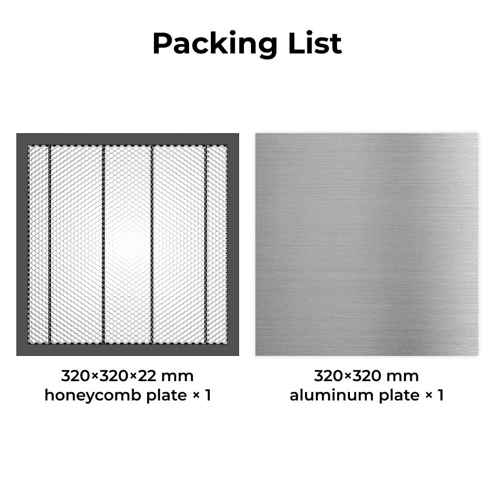 - 1 x TOOCAA Waben-Arbeitsplatte zum Laserschneiden und -gravieren: 12,59 x 12,59 x 0,87 Zoll (320 x 320 x 22 mm)